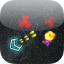 Mit dem linken Joystick steuerst Du Den Flug Deines Schiffes und mit dem rechten Joysticks wird die Waffe gesteuert.