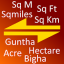 Simple no frills tool to help coverts between Guntha, Bigha, Acre, Hectare, Square metres, Square kilometres, Square miles.