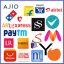 Flipkart Shopping, Amazon, Snapdeal shopping, Shopclues Shopping, Paytm Mall, Myntra Shopping, Jabong Shopping, Mr. Voonik Shopping, ebay Shopping, Mi Store, Tata CLiQ, naaptol, homeshop18, AliExpress, Quikr, Ajio etc