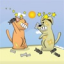 It's a windy day on the beach! Sassy (the cat) and Bobby (the dog) are naughty again! Instead of enjoying the view, they are throwing stuff at each other over the volleyball net. Em..., who is gonna be the winner?
