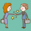 Instead of writing "Let's meet up and talk," save some energy for the actual discussion and quickly send our adorable cartoon characters sitting at a table with their labtops chatting and typing to their hearts content.