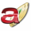 A character sticker with Iron red as a motif. Lower case letters of Latin basic characters.