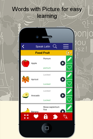 Speak Latin app with more than 2000 words in 55 categories like Food, Clothes, Numbers, Travel, Emergency, Health etc. is here to support you in Latin Language Learning. Our visual senses help us recall things easily, so this Learn Latin app is full of word images and audios for SMART learning. To be more interactive, this Learn Latin app contains different types of games.