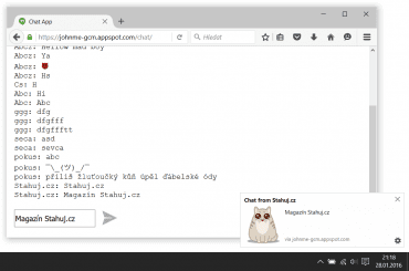 Jedná se o to, že webové stránky vám mohou zaslat zprávu, i když příslušnou stránku nemáte otevřenou, a to ani na pozadí. Ta se pak zobrazí jako vyskakovací okénko např. v pravém dolním rohu obrazovky, jež může obsahovat i obrázek a např. poslední verze Google Chrome k této technologii, kterou podporuje již delší dobu, přidává i možnost umístění tlačítka pro přímou reakci.